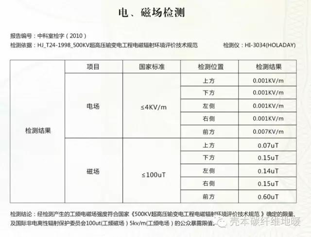 通過上表出自專業(yè)機構的電磁場檢測報告,我們可以看到殼本地暖電場和磁場兩項標準遠遠小于標準的千分之一不到。比日常生活家用電器都要小很多很多。真不知道,造謠者,為什么不說看電視會得白血病、癌癥呢?